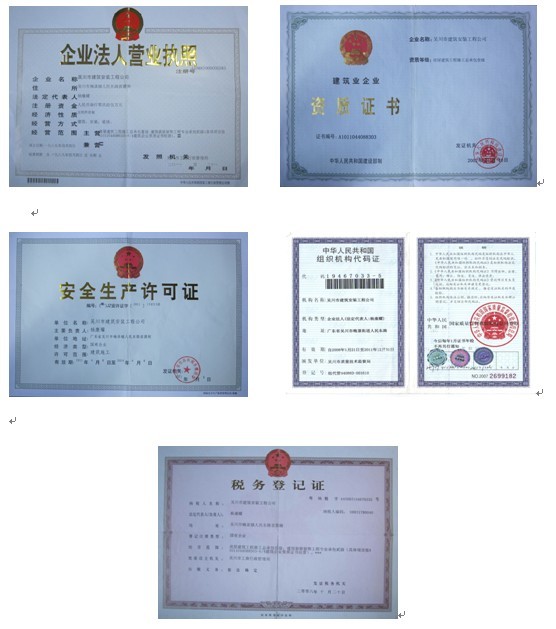 企業(yè)法人營業(yè)執(zhí)照;資質(zhì)證書;安全生產(chǎn)許可證;組織機構(gòu)代碼證;稅務登記證: