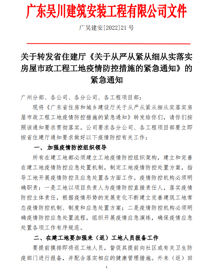 關于轉發省住建廳《關于從嚴從緊從細從實落實房屋市政工程工地疫情防控措施的緊急通知》的緊急通知